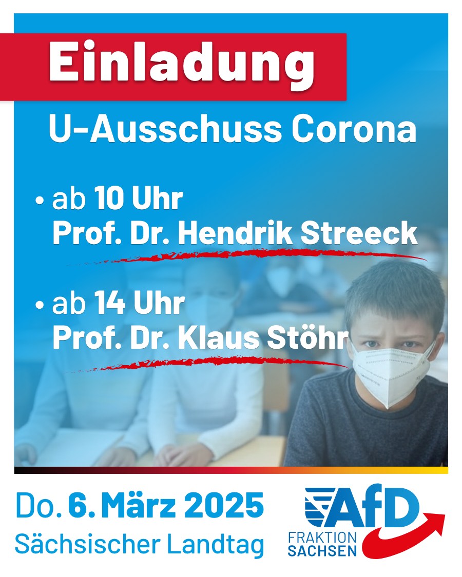Jetzt geht´s los! Am Donnerstag, den 6. März 2025, sprechen Prof. Dr. Hendrik Streeck und Prof. Dr. Klaus Stöhr im von der AfD durchgesetzten Corona-Untersuchungsausschuss.