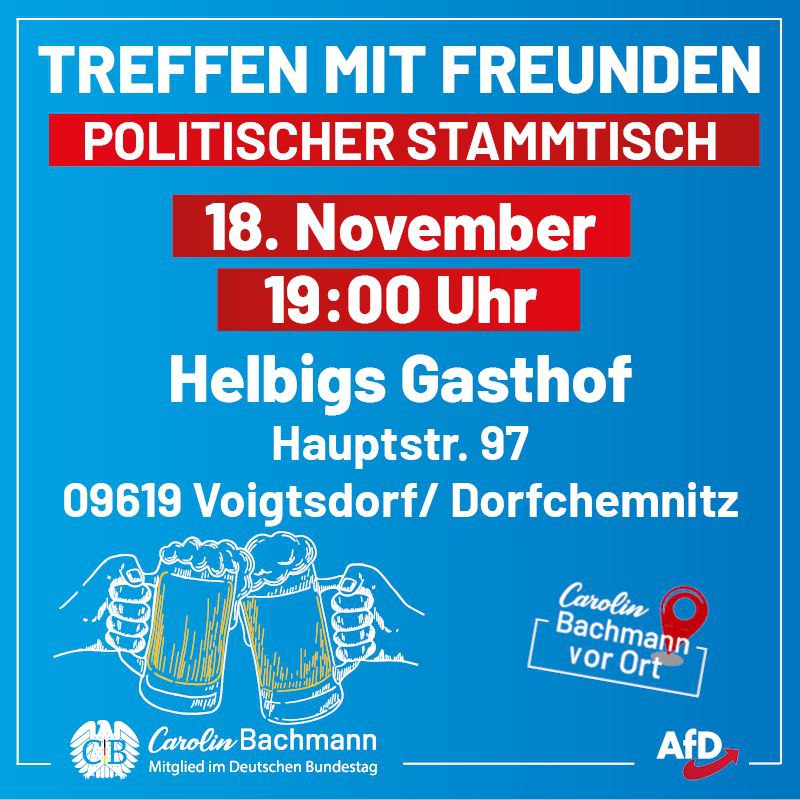 Herzliche Einladung für den 31. Januar 2025! Ab 18:00 Uhr findet der AfD Stammtisch mit der Regionalgruppe, Carolin Bachmann (MdB) und mir statt.